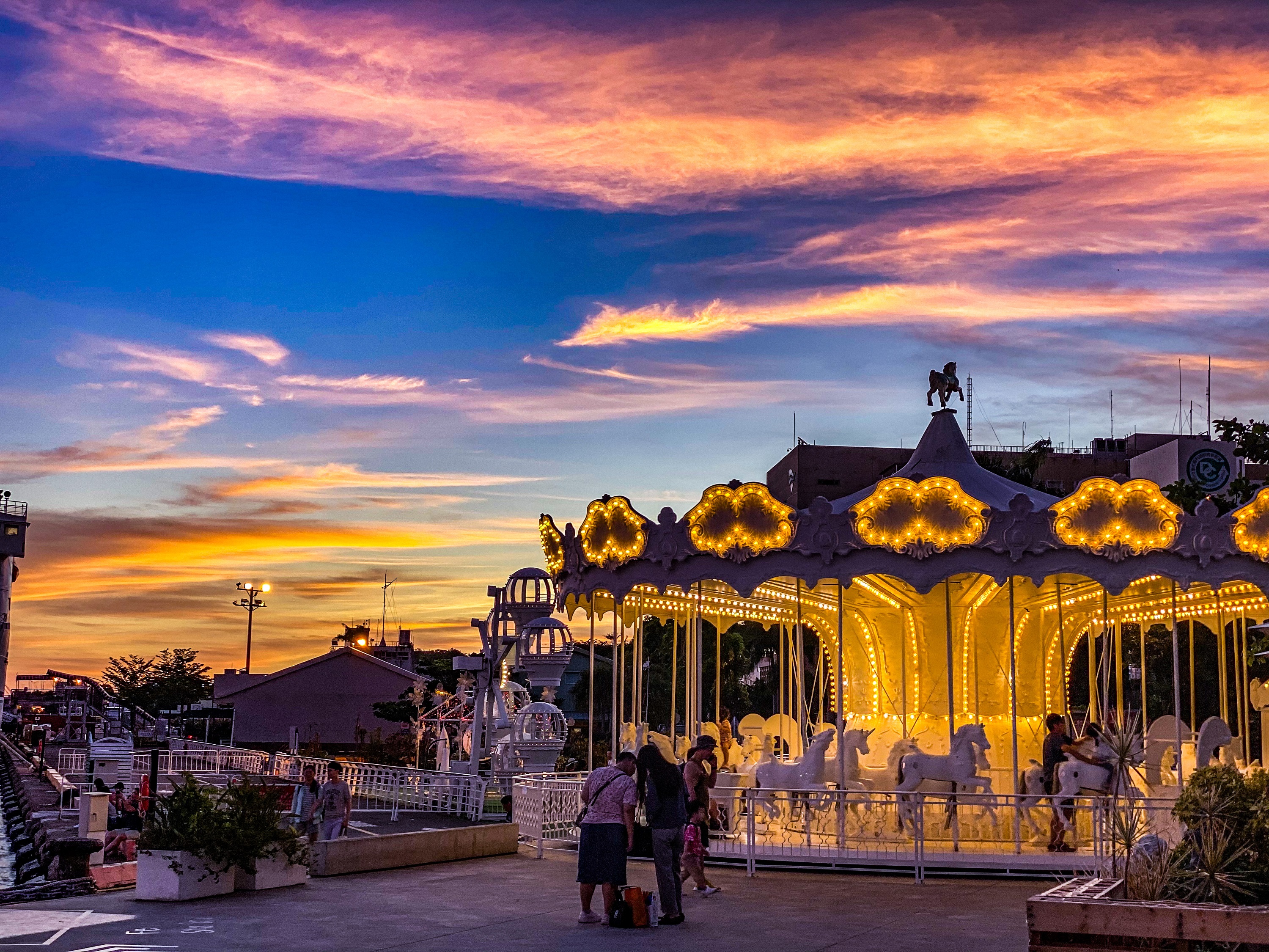 棧貳庫推出港濱美照讓大家免費下載,搭乘夢幻純白旋轉木馬、欣賞橘紅色的港濱晚霞,